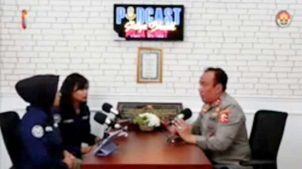 Tampil komunikatif sebagai host podcast Satya Bhakti Polda Sumut Polwan cantik Briptu Afika Nasution dan Briptu Gendis Purba.