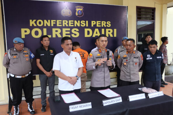 Kapolres Dairi, AKBP Otniel Siahaan, S.I.K., M.I.K dalam konferensi pers mengatakan, tersangka yang diamankan berinisial DL (22) warga Desa Pengambatan Kecamatan Merek Kabupaten Tanah Karo.