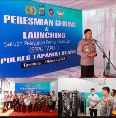 Tarutungg – medianasionalnews. Kepolisian Daerah Sumatera Utara (Polda Sumut) terus menunjukkan komitmennya dalam mendukung program nasional peningkatan kualitas gizi bagi anak bangsa. Hal ini diwujudkan melalui peresmian Satuan Pelayanan Pemenuhan Gizi (SPPG) Polres Tapanuli Utara yang dilaksanakan pada Rabu (29/10/2025), pukul 09.30 WIB, bertempat di Gedung SPPG Polres Taput, Jalan KS. Tubun, Kelurahan Hutatoruan X, Kecamatan Tarutung.