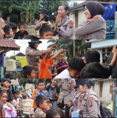Padangsidimpuan – medianasionalnews. Polwan Polres Padangsidimpuan melaksanakan kegiatan trauma healing bagi anak-anak yang terkena bencana alam di Desa Batuhoring dan Desa Huta Godang, Kecamatan Batang Toru, Kabupaten Tapanuli Selatan, Minggu (07/12/2025).
