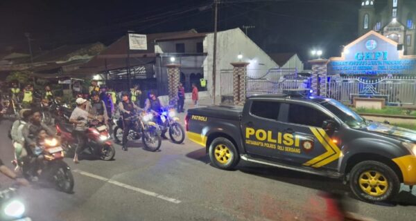 Untuk memastikan keamanan dan ketertiban masyarakat pada malam pergantian Tahun Baru 2026, Polresta Deli Serdang bersama TNI dan unsur Pemerintah Daerah menggelar patroli gabungan skala besar. Rabu (31/12/2025) malam.